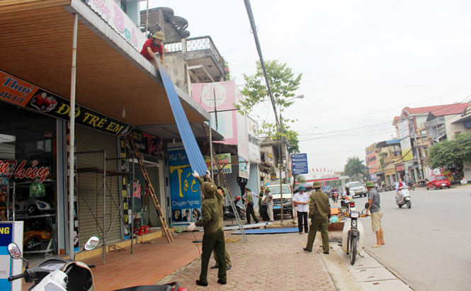 Trao đổi với chúng tôi, ông Nguyễn Xuân Trường, Phó Chủ tịch UBND T.X Phổ Yên cho biết: Tuyến Quốc lộ 3 cũ chạy qua địa bàn T.X Phổ Yên có chiều dài hơn 12km, đi qua các xã: Thuận Thành, Trung Thành, Nam Tiến, Tân Hương, Đắc Sơn, Hồng Tiến và phường Ba Hàng. Bằng những giải pháp đồng bộ và quyết liệt, đến thời điểm này, có khoảng 1.300/1.500 hộ tự nguyện tháo dỡ các công trình vi phạm. Qua đó, thị xã đã tiến hành tháo dỡ hơn 5.000m2 tường rào, cổng sắt; hơn 3.000m2 mái tôn; cắt tỉa hơn 1.000 cây xanh các loại... Đây cũng là lần đầu tiên T.X Phổ Yên thực hiện việc giải tỏa HLATGT trên tuyến Quốc lộ 3 cũ, do vậy, trước khi ra quân, Thị xã đã yêu cầu các xã, phường có tuyến Quốc lộ 3 cũ đi qua tiến hành thông báo, vận động người dân tự tháo dỡ, di chuyển công trình, kiến trúc vi phạm theo quy định. Kết quả sau quá trình giải tỏa sẽ là một trong những tiêu chí để Thị xã làm căn cứ bình xét thi đua đối với các địa phương vào cuối năm. Nếu địa phương nào không thực hiện được hoặc thực hiện chưa có hiệu quả thì lãnh đạo xã sẽ là người phải chịu trách nhiệm đầu tiên.