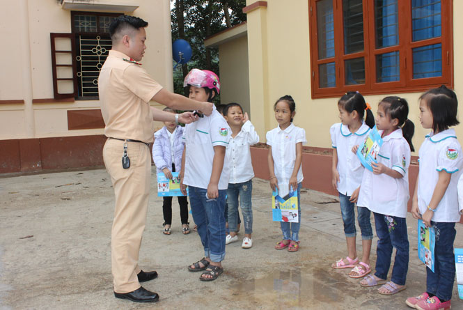 “Két... 4 chiếc ô tô phanh gấp để tránh đâm vào Duy - cậu bé học tiểu học đi xe đạp chỉ vì quá vội vàng, không để ý mà vượt đèn đỏ. Ngay lập tức, Duy được chú cảnh sát giao thông đưa lên vỉa hè nhắc nhở. Duy đã nhận lỗi và hứa sẽ không tái phạm”. - Đây là đoạn trích trong một bộ phim hoạt hình do Ban ATGT huyện trình chiếu để tuyên truyền về trật tự ATGT cho các em học sinh Trường Phổ thông dân tộc nội trú Tiểu học Sảng Mộc vào trung tuần tháng 11-2018 này.