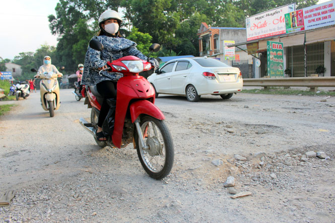 Ông Lê Văn Tiến, xóm Văn Khúc, xã Bình Thuận bức xúc: Tuyến đường xuống cấp đã ảnh hưởng rất lớn đến việc đi lại và sinh hoạt của người dân. Nhà tôi ở đầu cầu Gốc Duối, từ đầu năm đến nay, tôi đã chứng kiến hàng chục vụ tai nạn giao thông do đâm phải “ổ gà”, “ổ voi” trên đường. Người bị ngã nhẹ thì xây xát, nặng thì phải đưa đi bệnh viện cấp cứu. Do mặt đường đã bị bong tróc hết lớp thảm nhựa nên mùa mưa thì lầy lội, còn mùa nắng thì bụi bay mù mịt. Gia đình tôi dù đã đóng kín cửa suốt ngày nhưng bụi vẫn bay vào nhà phủ kín cả đồ đạc.