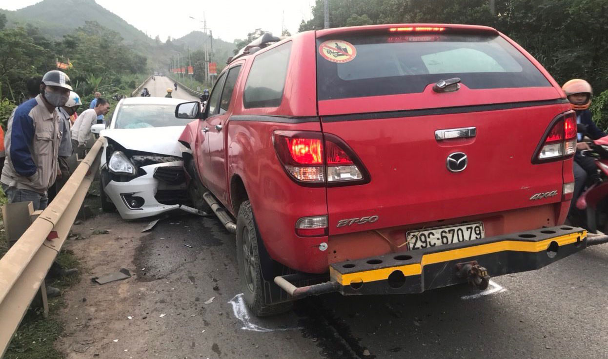 Theo đó, ô tô bán tải nhãn hiệu mazda mang biển kiểm soát 29C-67079 do Nguyễn Tiến Thuận, sinh năm 1985, hộ khẩu thường trú tại tổ 31, Thanh Trì, Hoàng Mai, T.P Hà Nội (hiện tạm trú tại tổ dân phố Sơn Hà, thị trấn Hùng Sơn, huyện Đại Từ) điều khiển đi hướng Thái Nguyên - Tuyên Quang và xe ô tô con có nhãn hiệu misubishi mang biển kiểm soát 20A-21756 do Vũ Quang Huy, sinh năm 1980, trú tại xóm Bẫu Châu, xã Lục Ba (Đại Từ) đi hướng ngược lại chở theo 2 người khác trên xe.