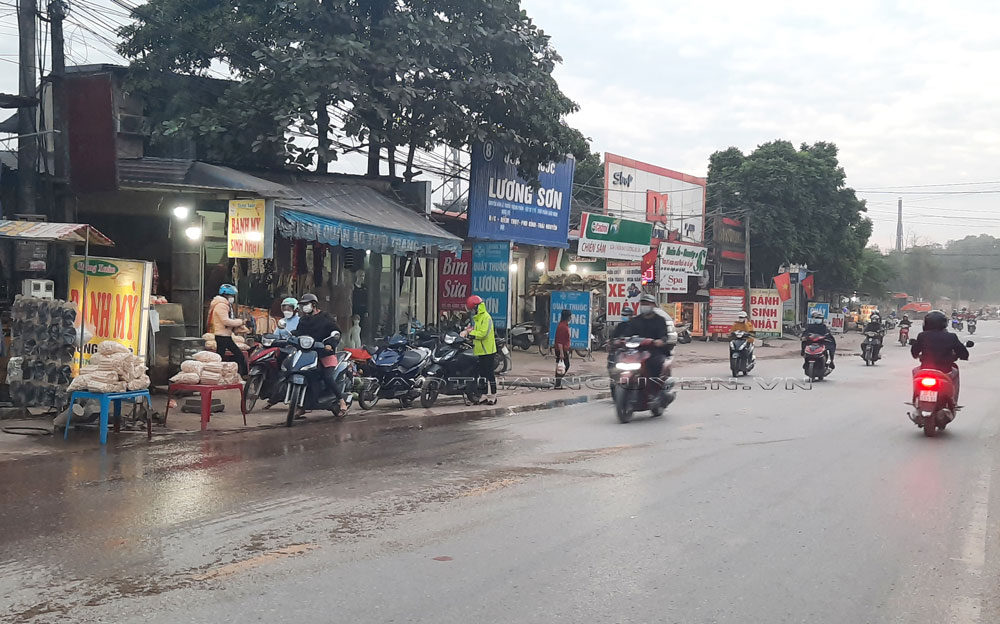 Ngày nào cũng vậy, vào khoảng từ 16 giờ 30 phút đến 18 giờ, khi đi qua Quốc lộ 37 đoạn trước cổng Công ty CP Đầu tư và Thương mại TNG, thuộc xã Kha Sơn và từ khu vực xóm Trại, xóm Soi 2, xã Nhã Lộng đến cổng Công ty CP Đầu tư và Phát triển TDT thuộc xã Điềm Thụy, người đi đường không khỏi ngán ngẩm trước tình trạng người dân dọc 2 bên đường bày bán hàng hóa tràn lan, có người đứng sát lòng đường. Các mặt hàng có đủ loại, từ rau, củ, quả, đồ nướng chín, bánh mỳ đến quần áo, giày dép… Người mua hàng phần lớn là công nhân làm việc tại các công ty, nhà máy ở các khu công nghiệp thuộc T.P Sông Công, T.X Phổ Yên và huyện Phú Bình…