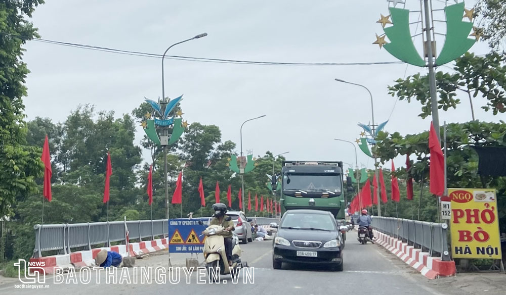Đây là cây cầu được xây dựng từ lâu, theo thiết kế cũ, mặt cầu hẹp (6m). Quá trình sửa chữa, đơn vị thi công phải ngăn một phần cầu nên diện tích dành cho phương tiện đi lại vốn đã nhỏ hẹp nay càng hẹp hơn.
