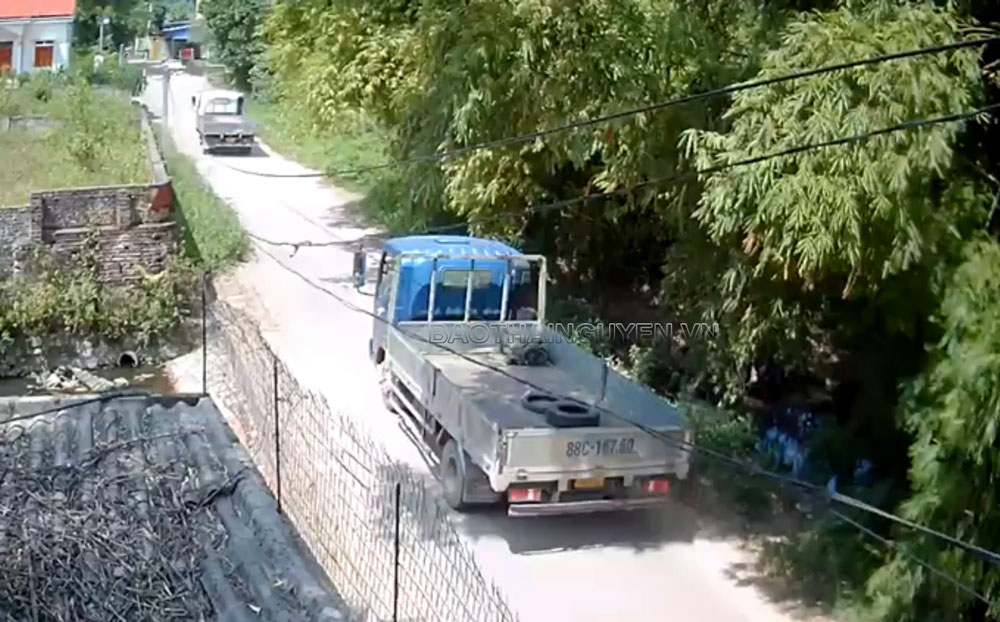 Nhiều xe tải đi qua tuyến đường dân sinh của xóm Giếng và xóm Mãn Chiêm, xã Hồng Tiến gây mất ATGT.