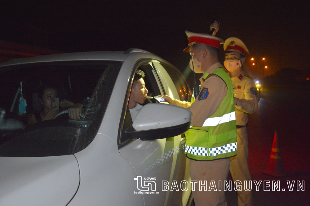 Đại úy Ngô Hoàng Anh Tú nói với chúng tôi: “Đây là thời điểm thường có nhiều lái xe vi phạm nhất”. Lực lượng chức năng chủ yếu kiểm tra xe con và một số xe tải. Lái xe khi bị dừng phương tiện sẽ được kiểm tra giấy tờ xe gồm: Giấy phép lái xe, đăng kiểm, sau đó sẽ kiểm tra nồng độ cồn và test nhanh ma túy đối với trường hợp khả nghi. Trường hợp kiểm tra cả ma túy và nồng độ cồn thì tổng thời gian khoảng 10 phút, nếu chỉ kiểm tra nồng độ cồn thì mỗi lái xe mất không quá 1 phút.