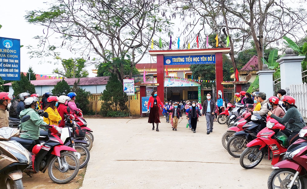 Trường Tiểu học Yên Ninh có đặc thù chủ yếu là học sinh nông thôn và gần 90% là người dân tộc thiểu số, nên việc chấp hành quy định an toàn giao thông cần có sự hợp tác chặt chẽ từ phụ huynh.