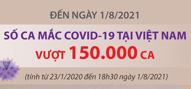 Tính từ 23/1/2020 đến 18h30 ngày 1/8/2021, số ca mắc COVID-19 của Việt Nam vượt 150.000 ca. Việt Nam hiện có tổng số 154.306 ca mắc COVID-19, trong đó có 152.044 ca ghi nhận trong nước và 2.262 ca nhập cảnh.
