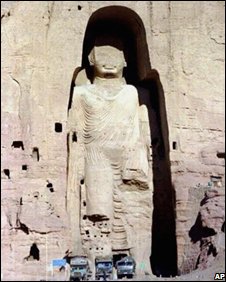 Các bức vẽ hình đức Phật trong các hang động ở Bamiyan, mà ở trước hang là hai tượng Phật khổng lồ.