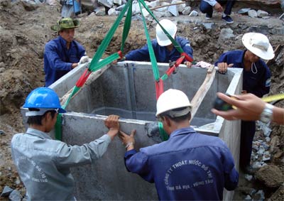 Hai năm qua, công trình trên được triển khai phục vụ thoát nước tại TP Vũng Tàu, với hàng trăm bể phốt loại này đã được lắp đặt. Tại Việt
