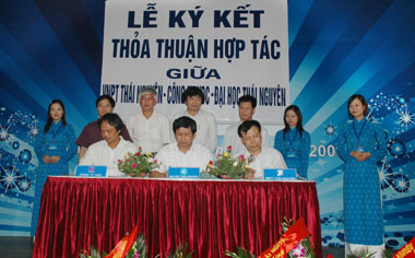 Tại Hội thảo cũng đã diễn ra lễ ký kết triển khai hợp tác chiến lược để phát triển E-learning và các dịch vụ internet - viễn thông giữa VNPT Thái Nguyên, VDC và Đại học Thái Nguyên (ảnh)