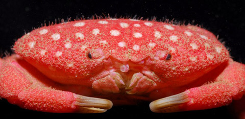 Một nhà hải dương phát hiện loài cua mới có hình dạng giống quả dâu tây, với những đốm trắng trên chiếc mai đỏ, ở bờ biển phía nam đảo Đài Loan.