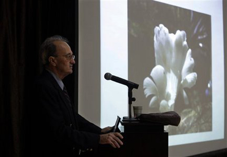 Nhà bệnh dịch học Robert Fontaine thuộc Trung tâm Kiểm soát và Phòng ngừa bệnh dịch Mỹ nói về nấm Tiểu Bạch trong một cuộc hội thảo về hội chứng đột tử Vân Nam tại Bắc Kinh, Trung Quốc vào ngày 13/7.