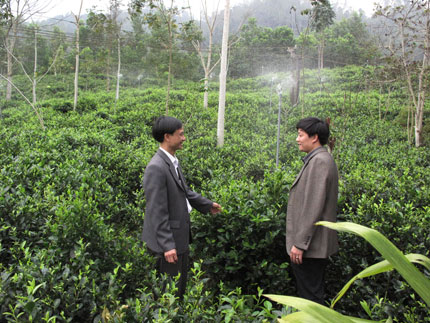 Ông Nguyễn Minh Nghĩa, xóm Tiên Trường là hộ được lựa chọn tham gia Dự án, cho biết: Gia đình tôi có gần 1 ha chè cành. Trước nay, gia đình tôi vẫn tưới chè bằng phương pháp thủ công, sử dụng máy bơm phun trực tiếp lên các nương chè, rất tốn nước mà hiệu quả đem lại không cao. Từ khi tham gia Dự án, tôi thấy phương pháp tưới tiết kiệm nước có hiệu quả rõ rệt. So sánh với phương pháp truyền thống thì phương pháp tưới tiết kiệm nước chỉ sử dụng lượng nước bằng 1/3, thời gian tưới giảm 2/3, đảm bảo độ ẩm tương đương nhau, công lao động phải sử dụng rất ít... Đặc biệt, khi sử dụng phương pháp này, tôi có thể kết hợp nhiều biện pháp chăm sóc thông qua hệ thống tưới như: phun thuốc bảo vệ thực vật, thuốc trừ cỏ, vận chuyển và tưới phân vi sinh dạng lỏng; chủ động và nâng cao hiệu quả bón phân, phân bón được hòa tan, ngấm ngay xuống đất, tăng khả năng hấp thụ cho cây trồng...