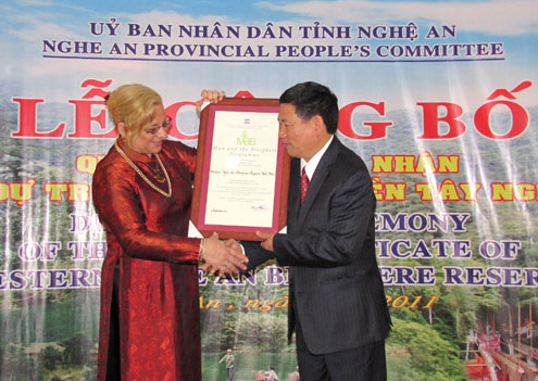 Với diện tích hơn 1,3 triệu ha, trải dài trên 9 huyện, 2 khu bảo tồn thiên nhiên, một rừng quốc gia…, sáng nay (29/4), Khu Dự trữ Sinh quyển miền Tây Nghệ An đã được UNESCO trao danh hiệu Khu dự trữ Sinh quyển thế giới.