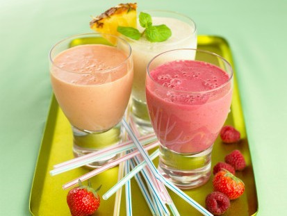 Sinh tố làm từ nước hoặc sữa chua ít béo kết hợp với hoa quả tươi (rau tươi) là một sự lựa chọn tuyệt vời để bạn cung cấp năng lượng với số lượng khiêm tốn calories.Biến thể của loại sinh tố này là vô tận và bạn có thể thay đổi hàng ngày để tìm hương vị và sự hứng thú mới cho mình.