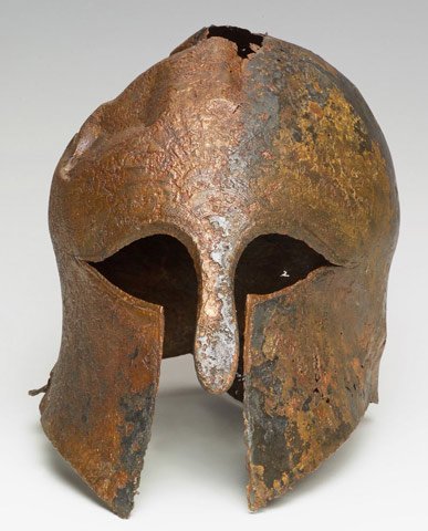 Chiếc mũ bảo vệ bằng đồng có niên đại 2600 năm tuổi, bao phủ bằng các lá vàng ròng, vừa được tìm thấy tại vùng vịnh Haifa, Israel. Theo suy đoán của các nhà khảo cổ học, chủ nhân chiếc mũ phải là một vị thủ lĩnh lính đánh thuê Hy Lạp giàu có.