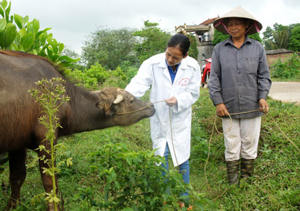 Ngoài dẫn tinh cho trâu nội và các mô hình trồng cỏ, mỗi năm chúng tôi còn cung cấp khoảng 80 nghìn con gà giống lai Mía, gà thả vườn Ai Cập cho trên 300 hộ gia đình chăn nuôi của thị xã. Các gia đình này hiện cũng đang thu được hiệu quả kinh tế cao. Bên cạnh đó, Trung tâm cũng chú trọng đến nâng cao nhận thức về khoa học kỹ thuật cho nông dân. Chỉ tính từ năm 2011 đến nay, Trung tâm đã tập huấn và đào tạo nghề cho cho trên 1,1 nghìn nông dân về kỹ thuật chăn nuôi trâu, bò; trồng và chế biến cây thức ăn trong chăn nuôi; chế biến phế phụ phẩm nông nghiệp; chăn nuôi gà an toàn sinh học; kiến thức về chăn nuôi, thú y...