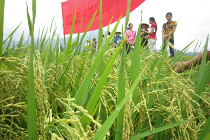 Mô hình được triển khai tại xóm 7 với 2 nhóm giống là: nhóm giống lúa thuần chất lượng gồm TBR 45, HT 9; nhóm giống lúa lai gồm CNR 02, Thanh Hoa 1. Giống đối chứng là Khang Dân 18 và Nhị ưu 838, thời gian gieo cấy từ tháng 2 đến tháng 6-2012.