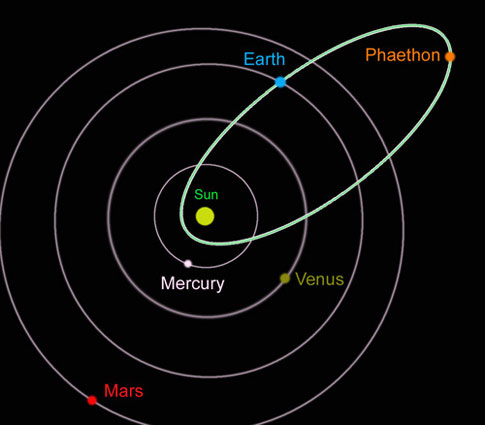 Khác với phần lớn các trận mưa sao băng khác có nguồn gốc từ khí bụi sao chổi, Geminids bắt nguồn từ một thiên thạch có tên là Phaeton. Đây là một thiên thạch cỡ 5km, có quỹ đạo lạ thường, nó có lúc tiến đến rất gần Mặt trời (21 triệu km, bằng 14% khoảng cách Trái đất – Mặt trời). Chính vì vậy nó được mang tên Phaeton, con của thần Mặt trời Helios trong thần thoại Hy Lạp.
