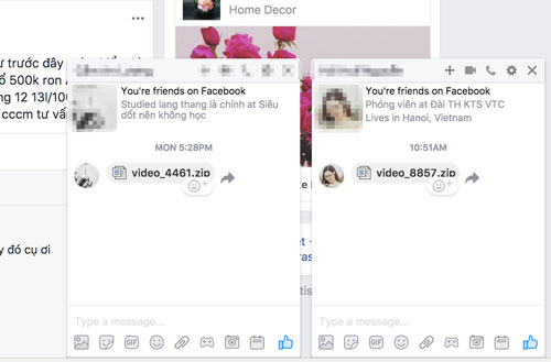 Dù mới bùng phát từ sáng ngày (19-12), nhưng những hiện tượng lạ của loại mã độc này đã xuất hiện từ khoảng 2-3 ngày trước đó. Cụ thể, nhiều người dùng Facebook Messenger nhận được tin nhắn của bạn bè có chứa một tập tin nén .zip (có tên dạng “video_” + 4 số ngẫu nhiên).
