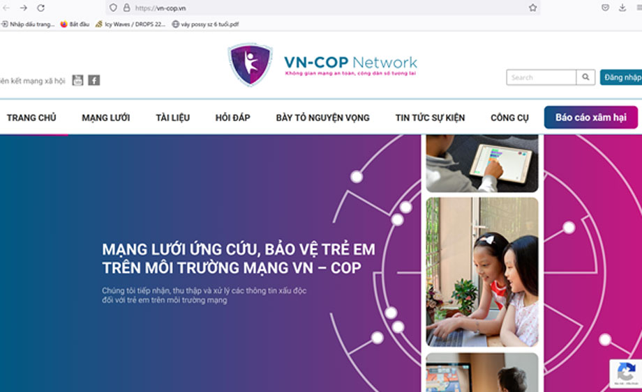 Cục An toàn thông tin (Bộ Thông tin và Truyền thông) - cơ quan thường trực Mạng lưới ứng cứu, bảo vệ trẻ em trên môi trường mạng đã ra mắt website mạng lưới tại địa chỉ vn-cop.vn (VN-COP) nhằm truyền thông, lan tỏa kỹ năng, kiến thức về bảo vệ trẻ em trên môi trường mạng. Một trong những tính năng đã được cung cấp trên trang website của mạng lưới là tiếp nhận các báo cáo xâm hại trẻ em trên mạng.