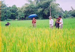 Chị Vũ Thị Hà nói: Những người nông dân chúng tôi rất phấn khởi khi nhận được sự quan tâm của các đồng chí lãnh đạo địa phương, của các ngành chức năng đã đưa những giống lúa mới cho năng suất, chất lượng cao về cho nông dân chúng tôi sản xuất, có như vậy chúng tôi mới mong xoá được đói, giảm được nghèo…