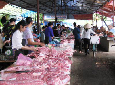 Chị Hoàng Thị Hà, một chủ sạp kinh doanh thịt lợn tại chợ Thái cho biết: “Chúng tôi mua lợn hơi giá đã lớn trên 23 nghìn đồng/kg nên giá thịt thành phẩm bán ra cũng tăng theo. Nếu thời điểm đầu năm giá 1kg thịt nạc thăn là 40 nghìn đồng thì giờ tăng lên 50 nghìn đồng...”.