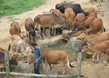 Việc kết hợp chăn thả tập trung hạn chế được thời gian trông coi mà vẫn đảm bảo tính an toàn liên tục. Hơn thế, nếu hộ nào có nhu cầu bán bò thì các hộ khác phải đoàn kết, có trách nhiệm cùng lên đưa bò xuống núi. Đưa bò lên thì dễ nhưng đưa bò xuống phải có 5 – 6 lực điền kinh nghiệm. Trước hết, phải gọi bò về để xỏ mũi (vì bò được thả trên núi đều không có thừng). Sau đó, một người dắt xuống núi thì những người còn lại phải đi sau để ghì bò lại, nếu không chúng sẽ dứt đứt thừng chạy mất, thậm chí bò còn bị tuột dốc đâm luôn vào người dắt. Mới đây, gia đình ông Nông Đình Minh đã bán liền 30 bò đực và 3 cặp bò mẹ con. Ông Minh đã xây nhà 2 tầng trị giá gần 300 triệu đồng. Tổng đàn bò của gia đình ông Minh hiện nay vẫn còn 26 con, trong đó có 11 bò sinh sản. Trong số 7 hộ thì có 2 hộ đã được cấp giấy chứng nhận hộ chăn nuôi trang trại, 5 hộ khác đều sắp đạt tiêu chuẩn. Ông Minh khẳng định, cứ mang vài cặp lên thả, không vướng mắc gì đến ai, với điều kiện thiên nhiên ưu đãi, bò ăn cỏ xanh và uống nước lã thì khoảng dăm năm đã thành ông chủ trang trại rồi.