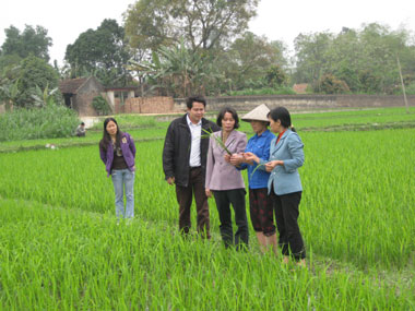 Biết chúng tôi muốn tìm hiểu về cách làm mới trong sản xuất nông nghiệp của huyện Phổ Yên, bà Nguyễn Thị Chín, Trạm trưởng Trạm Khuyến nông huyện nói ngay: - Vậy thì về xã Đồng Tiến, ở đó bà con nông dân đang ứng dụng hệ thống thâm canh lúa cải tiến rất hiệu quả.