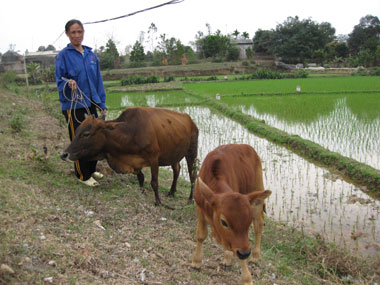 Từ 1,5 triệu đồng tiền vốn vay ngân hàng, cộng tiền giúp đỡ của anh em họ mạc, gia đình bà Nguyễn Thị Mậu, xóm Suối Đào xã Bá Xuyên mua 1 con bò nái sinh sản. Khi có bò, bà Mậu được hội viên trong Chi hội hướng dẫn cách chăn thả, phòng bệnh, phương pháp phối giống và chăm sóc bê con… sau 6 năm, con bò của bà Mậu đã sinh được 5 lứa. Bà Mậu cho biết: Vì hoàn cảnh nhà khó khăn, nên khi bê được 12 tháng tuổi tôi lại gọi người đến bán. Nhờ vậy, gia đình tôi đã trả được nợ ngân hàng. Hiện gia đình tôi có 4 khẩu, ngoài 4 sào ruộng còn có 2 con bò… Còn ông Dương Văn Thế, Chủ tịch Hội Nông dân thị xã Sông Công cho biết: Cách làm của Hội là trang bị cho bà con chiếc cần câu. Chiếc cần câu đó là cách tạo cho hội viên có kiến thức KHKT về trồng trọt, chăn nuôi; vốn vay phát triển kinh tế… qua đó tư duy làm ăn của hội viên được thay đổi, biết chủ động trong phát triển kinh tế, xóa đói giảm nghèo.