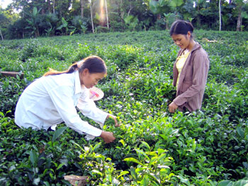 Hiện nay, bình quân mỗi gia đình trong xã có từ 4 đến 5 sào chè. Trên đồi chè xanh mướt của mình, chị Nguyễn Thị Môn, thôn Thẩm Vậy tâm sự: Trước đây, thu nhập kinh tế của gia đình trông chỉ trông vào 7 sào ruộng, vài con lợn, con gà nên đời sống gặp nhiều khó khăn. Từ khi xã có chủ trương khuyến khích người dân chuyển đổi những loại cây trồng cho hiệu quả kinh tế thấp sang trồng cây chè, chị đã mạnh dạn vay vốn ở Ngân hàng CSXH huyện đầu tư mua cây giống, phân bón để trồng 4 sào chè cành. Ba năm gần đây, gia đình chị thu hoạch được khoảng 3 tấn chè búp tươi/năm, trừ chi phí cho thu nhập hàng chục triệu đồng/năm. Hay như gia đình anh Ma Công Vũ, xóm Đòn Thái, mỗi năm thu nhập trên dưới 15 triệu đồng từ 9 sào chè trung du và chè cành.