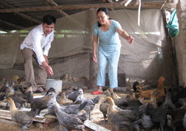 Nhìn đàn gà mang bộ lông đen đúa, chân có 5 ngón chạy ràn rạt khi thấy người lạ, bà Cường cho biết thêm: Đây là loại gà nhỏ nên ăn ít, dễ nuôi, có sức đề kháng cao... Gia đình có dự định nhân giống gà này bán cho bà con trong vùng. Qua câu chuyện chúng tôi biết: Gia đình bà Cường là một trong những hộ đầu tư cho chăn nuôi gia cầm từ hơn mười năm nay. Với quy mô chăn nuôi thường xuyên từ 600 đến 800 con gà, vịt các loại, mỗi năm cho thu nhập khoảng trên 50 triệu đồng. Nhưng khi nuôi thử giống gà Ác thấy có hiệu quả kinh tế, gia đình bà có dự định đầu tư xây dựng quy mô chuồng trại sạch, thoáng hơn để dần thay thế giống gà Lương Phượng, gà Sác Xô.