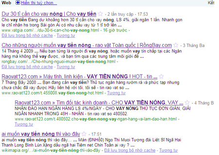 Một quảng cáo viết: "Nếu bạn từng là người đi vay nóng, hoặc muốn vay tín chấp tại các ngân hàng mà không thể vay được và bạn tìm qua các trung tâm môi giới để nhờ họ vay tiền, bạn mất tiền phí và chẳng được gì thì liên hệ với tôi..."