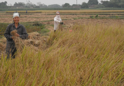 Hiện nay, toàn bộ diện tích lúa mùa muộn đã chín. Tranh thủ thời tiết thuận lợi, bà con nông dân đang tích cực thu hoạch. Đến nay, trên 50% diện tích đã được thu hoạch, năng suất ước đạt 46,5 tạ/ha. Thu hoạch tới đâu, bà con nông dân tiến hành làm đất trồng rau xanh, khoai tây và cà chua đến đó, để đảm bảo trồng hết diện tích cây màu vụ Đông theo kế hoạch đã đề ra.