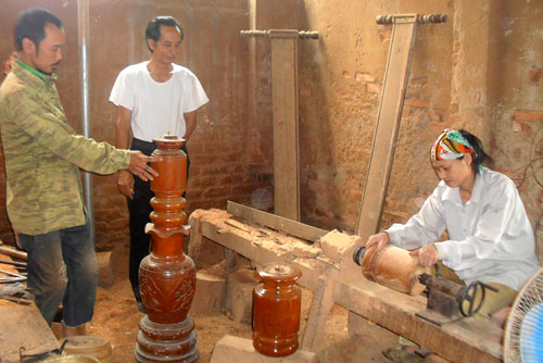 Chị Nghiêm Thị Duyên, người dân trong xóm nói: Năm ngoái, trung bình mỗi tháng nhà tôi bán được trên 100 triệu tiền hàng thì nay chỉ còn được khoảng 20 triệu, thậm chí có tháng không bán được sản phẩm nào. Đầu năm 2012, tôi đã chuyển làm con tiện cầu thang sang làm đồ thờ, sập, gụ. Nhưng để làm được 1 sản phẩm này cũng đòi hỏi phải có vốn đầu tư lớn. Vì thế, chúng tôi đang gặp rất nhiều khó khăn.