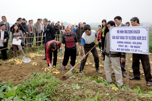 Ngày 22-1, Sở Khoa học - Công nghệ đã phối hợp với Phòng NN - PTNT huyện Đồng Hỷ tổ chức Hội thảo mô hình ứng dụng khoa học và công nghệ sản xuất khoai tây vụ đông 2012 tại xóm Cậy, xã Huống Thượng (ảnh). Đây là năm thứ 2 huyện thực hiện mô hình này tại địa phương.