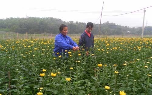 Gia đình chị Phùng Thị Tuyết có 3 sào đất màu thì đều dùng để trồng hoa cúc và hoa lay ơn vào vụ đông từ năm 2008. Trước đây, cũng diện tích đó, chị thường trồng rau, ngô hoặc có khi bỏ hoang do thiếu nước tưới. Theo chị Tuyết thì hoa cúc là loại cây tương đối dễ trồng và dễ bán, trong khi vốn đầu tư thấp. Chỉ vào ruộng hoa cúc đang nở rộ, chị Tuyết nói: Giá bán hoa cúc hiện tại thấp (trung bình 1 nghìn đồng/bông) nhưng 1 sào hoa cúc này cũng cho gia đình tôi thu lãi khoảng 8 triệu đồng, nếu được giá như năm ngoái thì có thể lãi tới 40 triệu đồng, cao hơn rất nhiều so với trồng rau, ngô vụ đông. 2 năm gần đây, nhà tôi trồng thêm hoa lay ơn phục vụ thị trường tết, hy vọng năm nay hoa sẽ nở đúng dịp và được giá hơn.