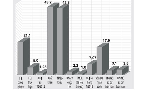 Tỷ lệ thực hiện so với dự toán của tổng thu ngân sách tháng 1 đạt thấp và của tổng chi ngân sách lại cao hơn của tổng thu (3,5% so với 3,1%). Ổn định kinh tế vĩ mô năm 2013 vẫn là vấn đề lớn nhất, khó nhất.