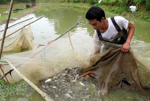 Kéo lưới cá lên, anh Trọng vui vẻ: “Đây là lứa cá đầu tiên của năm nay. Mỗi lứa cá kéo dài từ 1 đến 3 tháng. Thời gian nuôi 1 lứa cá tùy theo nhu cầu của khách hàng. Lứa này, nhờ áp dụng đúng kỹ thuật, thời tiết lại thuận lợi nên tỷ lệ cá sống cao, trừ chi phí, gia đình tôi thu lãi trên 25 triệu đồng. Sau đợt này, tôi sẽ thả thêm khoảng 10 nghìn con cá các loại”. Cá giống bắt đầu thả từ tháng 2 và kết thúc vào tháng 8 âm lịch hằng năm. Để cá đạt tỷ lệ sống cao, cần tuân thủ đúng kỹ thuật chăm sóc như: vét bùn, vãi vôi khử trùng ao mỗi năm 1 lần. Cá giống phải chọn những con khỏe mạnh, có vảy đều, không bị xây xát. Cần chú ý phòng bệnh cho cá ngay sau khi thả…