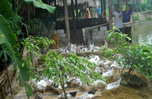 Ngồi bên cạnh chồng, chị Hoàng Thị Moong vợ anh lúc này mới lên tiếng: Lúc đó, trong có 1 tuần mà vợ chồng tôi phải chôn gần 500 con vịt, trắng chuồng. Mỗi ngày gánh vài gánh vịt đi chôn, vừa chôn vừa khóc. Chồng tôi động viên vợ “thua keo này ta bày keo khác” nhưng tôi biết anh ấy cũng khổ tâm lắm. Chỉ trong 1 tuần mà anh ấy gầy dộc đi, chiều nào cũng thẫn thờ ngồi nhìn cái ao không.