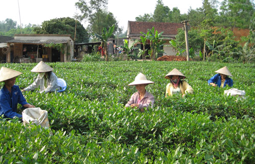 Chúng tôi đứng giữa cánh đồng vi vút gió Đông, phóng tầm mắt ngắm những ruộng ngô sắp đến kỳ cho thu hoạch, bắp nào bắp đấy to dài, chắc nịch xanh biếc một màu. Xa xa, một số chân ruộng được trồng bí xanh, rau màu… Những ngôi nhà xây kiên cố thấp thoáng sau nương chè ngút xanh. Gặp những người nông dân đang hái chè, thấy chúng tôi, một chị ngừng tay tiếp chuyện: Trước kia, chỗ này là chân ruộng cao, chỉ cấy được một vụ, gia đình tôi cho san đất, trồng chè cành. Mình là nông dân, chỉ biết bám vào đồng ruộng để sản xuất, xóa đói, giảm nghèo. Để đạt hiệu quả cao, gia đình tôi luôn tích cực ứng dụng tiến bộ khoa học kỹ thuật, trồng các giống mới để nâng cao giá trị kinh tế cây trồng. Từ hộ thuộc diện nghèo, nay kinh tế đã ổn định.