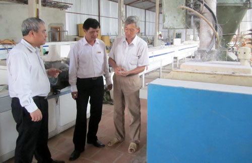 Nửa buổi trò chuyện, đi một vòng tham quan các khu vực sản xuất, tôi thấy phương thức quản lý, chiến lược kinh doanh của bác Thụ rất thiết thực: Dây chuyền sản xuất đều tự động hóa hoặc bán tự động nên công nhân rất ít mà vẫn hiệu quả; khu văn phòng, xưởng sản xuất được xây dựng chắc chắn, đảm bảo an toàn nhưng không quá cầu kỳ. Bác Thụ cho biết: Kinh doanh trong cơ chế thị trường nên đòi hỏi sản phẩm làm ra phải chất lượng tốt, mẫu mã đẹp nhưng giá thành cạnh tranh. Để làm được điều này không cách nào khác là doanh nghiệp phải đầu tư dây chuyền hiện đại nhưng tính toán chi tiết để cắt giảm mọi khoản chi phí không cần thiết. Nói rồi, bác Thụ đưa chúng tôi đến tận hàng cột bê tông dựng làm xưởng và giới thiệu đó là những cây cột điện cao thế mua thanh lý với giá chỉ có 1 triệu đồng/cột nhưng hữu dụng không kém những cây cột bê tông cốt thép mà giá thành chỉ bằng 1/3. Bác Thụ mộc mạc phân tích: 1kg hạt nhựa nếu nhập trực tiếp từ nhà sản xuất giá là 8 nghìn đồng nhưng nếu mình tự mua bột đá ở Yên Bái và hạt nhựa của Công ty Hóa chất Phú Mỹ về ứng dụng công nghệ để sản xuất nhựa thành phẩm thì giá thành chỉ còn non nửa; tránh sản xuất vào giờ cao điểm để tiết kiệm được hơn 10 triệu đồng tiền điện/tháng (giá điện giờ cao điểm cao gấp đôi)… Việc cắt giảm chi đã giúp giảm giá thành sản phẩm, tạo lợi thế cạnh tranh nên mặc dù là doanh nghiệp nhỏ nhưng sản phẩm trần nhựa của Doanh nghiệp Tư nhân Quý Thắng đã liên tục mở rộng thị trường, sản phẩm sản xuất ra đến đâu tiêu thụ hết đến đó.