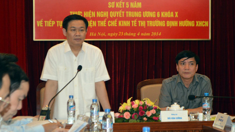 Chiều 23/4, tại Hà Nội, đoàn công tác của Trung ương do đồng chí Vương Đình Huệ, Trưởng Ban Kinh tế Trung ương, Phó trưởng Ban chỉ đạo sơ kết 5 năm thực hiện Nghị quyết Trung ương 6 khoá X, chủ trì buổi làm việc với Ban Thường vụ Đảng uỷ khối các doanh nghiệp Trung ương và lãnh đạo các tập đoàn, tổng công ty, các ngân hàng trong khối về tình hình thực hiện Nghị quyết Trung ương 6 khoá X về “Tiếp tục hoàn thiện thể chế kinh tế thị trường định hướng xã hội chủ nghĩa”.