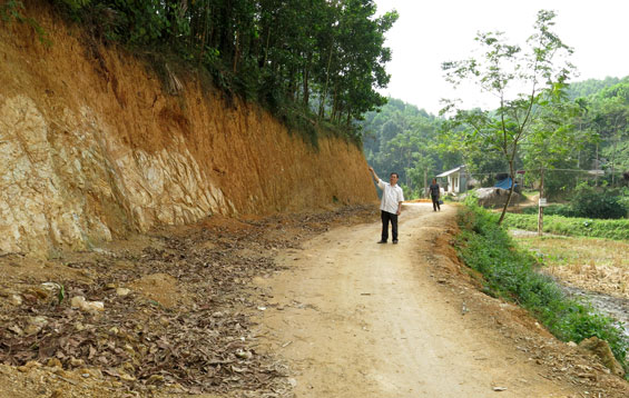 Tuyến đường Na Pháng- Bản Cái dài 1.273m, trước kia chỉ rộng hơn 2m nền đường bằng đất, bởi vậy khi trời mưa xuống thì lầy lội, trời nắng thì bụi bặm. Đầu năm 2014 xóm được Nhà nước ưu tiên đầu tư làm mới tuyến đường, đổ bê tông và mở rộng 5m. Để khơi dậy phong trào hiến đất, Chi bộ thống nhất trước hết đảng viên phải vừa vận động tuyên truyền, vừa làm gương “nói đi đôi với làm”. Bản thân ông Luyến cũng đã hiến hơn 100m2 đất cấy lúa 2 vụ. Cũng như ông Luyến, đảng viên Nguyễn Văn Đài đã chặt hơn 200 cây keo để hiến 300 m2 đất. Đảng viên Nguyễn Văn Đài chia sẻ: Phải chặt những cây keo chuẩn bị cho thu hoạch kể ra rất tiếc, nhưng gia đình thấm thía nỗi khổ vì đường rồi, giờ được Nhà nước hỗ trợ kinh phí làm, phải đóng góp nhiều hơn nữa tôi vẫn sẵn lòng. Cũng như ông Luyến, ông Đài, 5 đảng viên khác trong Chi bộ có tuyến đường đi qua đất vườn hoặc đất thổ cư thì cả 5 đảng viên đều hiến, từ việc làm tiên phong của đảng viên, giờ thì toàn bộ 33 hộ dân có tuyến đường đi qua đều tự nguyện hiến đất, tổng cộng diện tích đất hiến là trên 3.000 m2. Trong số này có nhiều hộ kinh tế còn rất khó khăn, nhưng khi được tuyên truyền, vận động, họ sẵn sàng dỡ bỏ cây cối trên đất để giải phóng mặt bằng cho đơn vị thi công.
