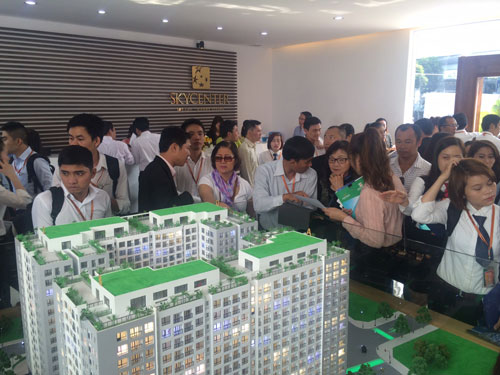 Ngày 5-3, Công ty Bất động sản Hưng Thịnh (Hưng Thịnh Land) đã khai trương căn hộ mẫu thuộc dự án Sky Center nằm trên đường Phổ Quang, quận Tân Bình, TP HCM. Dự án này là một trong số nhiều dự án mà Hưng Thịnh Corp (công ty mẹ của Hưng Thịnh Land) mua lại của các doanh nghiệp (DN) khác đang gặp khó khăn về vốn để thực hiện tiếp. Dù giá bán căn hộ trung bình từ 30 triệu đồng/m2 nhưng ngay ngày khai trương, hàng trăm khách hàng đã chen chân đến xem nhà mẫu, nhiều người đặt cọc mua.
