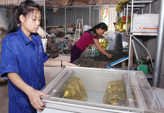 Còn tại HTX chè Tuyết Hương, có trụ sở tại xóm Na Long, Hóa Trung, các xã viên thì đang bận bịu với việc chuẩn bị bao bì bằng mây tre, thổ cẩm cho sản phẩm chè của mình. Chị Trần Thị Tuyết, Giám đốc HTX cho biết: Quá trình thành lập và đi vào hoạt động, chúng tôi đã được đã được sự tư vấn, hỗ trợ nhiệt tình cụ thể của Liên minh HTX tỉnh. Qua đó HTX còn được tiếp cận với các chương trình hội thảo, tập huấn do Liên đoàn HTX CHLB Đức (DGRV) tổ chức. Ngoài nắm chắc các kiến thức về chăm bón, sản xuất chè sạch, chúng tôi còn được DGRV hỗ trợ máy sao chè bằng ga, thuận lợi hơn trong sản xuất. Khi đã sản xuất được các sản phẩm chất lượng tốt, HTX đã tập trung vào cải tiến mẫu mã bao bì. Chúng tôi đưa vào sử dụng những hộp đựng trà bằng mây tre đan, thổ cẩm dệt thủ công, tuy rất giản dị nhưng thân thiện với môi trường và tinh xảo, xinh xắn. Từ đó, tạo được ấn tượng tốt nhất là đối với khách du lịch, khách nước ngoài… Chuẩn bị cho Festival lần này, chúng tôi đang chuẩn bị đưa vào sử dụng những bao bì bằng chất liệu thổ cẩm, nhằm phục vụ tốt hơn khách hàng của mình. Được biết HTX thành lập từ năm 2012 với 12 xã viên và 15ha chè nguyên liệu này mỗi năm tiêu thụ được gần 50 tấn trà thành phẩm.