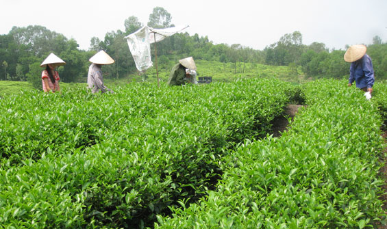 Trước đây, vợ chồng anh Nguyễn Văn Lưỡng và chị Đào Thị Phương đi làm thuê khắp nơi từ trong Nam ngoài Bắc với đủ thứ nghề, nhưng cuộc sống vẫn nghèo khó. Từ khi xóm được Nhà nước hỗ trợ cây giống chè, vợ chồng anh chị đã bàn tính cải tạo vườn bãi để trồng chè. Cùng với việc đầu tư trên 40 triệu đồng để san gạt mặt bằng, anh chị còn đầu tư công sức đi cắt hàng trăm gánh guột để che cho những diện tích chè mới trồng. Từ 6 sào chè trồng năm 2011, đến nay, vợ chồng anh chị đã có 1,3 mẫu chè. Trung bình cứ 32-35 ngày cho thu hoạch một lứa chè, mỗi lứa cho thu từ 1,2- 1,5 tạ chè búp khô, với giá hiện tại từ 90.000- 120.000 đồng, sau khi trừ chi phí, mỗi lứa gia đình cũng có thu nhập từ 8,5- 9 triệu đồng. Chị Phương cho biết: Mảnh ruộng trước kia gia đình chuyên trồng lạc, một năm 2 vụ cho thu nhập cao nhất cũng chỉ được 1 triệu đồng. Nhưng từ khi đưa cây chè vào trồng thay thế, vẫn mảnh đất ấy nhưng mỗi lứa cũng thu lãi trên 3 triệu đồng và nếu tính cả năm sẽ cho nhập khoảng 20 triệu đồng.