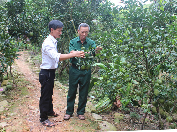 Để tìm hiểu rõ hơn về vùng chuyên canh cây ăn quả của xã, chúng tôi tìm về 2 xóm Tân Tiến. Vừa vào đến đầu xóm, chúng tôi đã thấy bạt ngàn vườn cây ăn quả. Bên cạnh cây nhãn đã cho thu hoạch, các loại bưởi, cam, quất đang cho những trái to, mọng, sai trĩu trịt. Ông Hoàng Văn Cố, Trưởng xóm Tân Tiến 1 cho biết: Toàn xóm có 53 hộ, 197 nhân khẩu thì cả 53 hộ trồng cây ăn quả. Nhà nhiều thì 2ha, nhà ít thì 4 đến 5 sào. Những năm qua, nhờ áp dụng đúng kỹ thuật chiết ghép, chăm sóc cây nên vụ nào người dân trong xóm cũng được mùa. Cũng vì vậy mà nhiều hộ đã thoát nghèo, số hộ nghèo của xã giảm từ 39 hộ năm 2011 xuống chỉ còn 7 hộ.