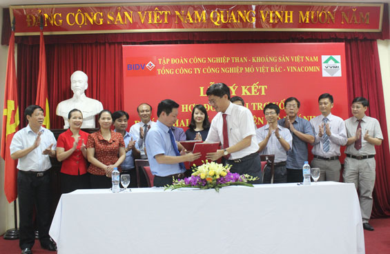 Sáng 9-9, tại Hà Nội, được sự ủy quyền của Ngân hàng TPCP Đầu tư và Phát triểnViệt Nam (BIDV), BIDV Chi nhánh Thái Nguyên (đơn vị được giao làm đầu mối) đã tổ chức Lễ ký kết hợp đồng cho vay đối với Tổng Công ty Công nghiệp mỏ Việt Bắc - Vinacomin cho Dự án khai thác lộ thiên Mỏ than Khánh Hoà (cải tạo mở rộng), với tổng nguồn vốn 718 tỷ đồng.
