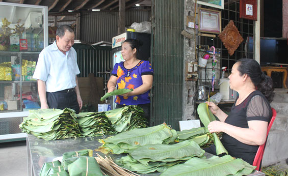 Tạm gác câu chuyện với Trưởng ban Quản lý LN Bánh chưng Bờ Đậu, ông Huân đi thăm một số hộ để trực tiếp nắm bắt thông tin và động viên bà con. Người đàn ông 66 tuổi có tác phong giản dị đó đi đến đâu cũng được đón chào nồng hậu.