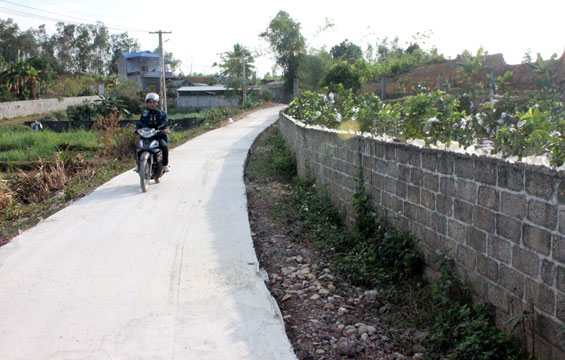 Cho xe chạy chầm chậm vòng quanh các xóm Xuân Đám, Bo, Đồng Ao, Đồng Tâm, Thùng Ong..., chúng tôi không khỏi bất ngờ trước sự đổi thay ở nơi đây. Còn nhớ chỉ cách đây 3 - 4 năm, đường dẫn vào các xóm này là đường đất nhỏ hẹp, vào ngày trời mưa, đường lầy lội đi lại rất vất vả. Nhưng nay, đã được thế bằng những con đường bê tông bằng phẳng, quang đãng. Đưa chúng tôi đến đoạn đường dài hơn 1km vừa mới được hoàn thành, ông Đặng Tiến Dũng, Bí thư Chi bộ Thùng Ong vừa dẫn đường, vừa vui vẻ trò chuyện: Con đường này dẫn vào khu vực chăn nuôi của xóm, dù chỉ đi qua khu sinh sống và chăn nuôi của khoảng 25 hộ dân nhưng theo Nghị quyết Chi bộ đã đề ra, tất cả các đường liên xóm, đường nhánh đều huy động toàn bộ nhân dân trong xóm đóng góp. Do vậy 94 hộ dân với 400 nhân khẩu, mỗi người đóng 700 nghìn đồng để thi công tuyến đường này.